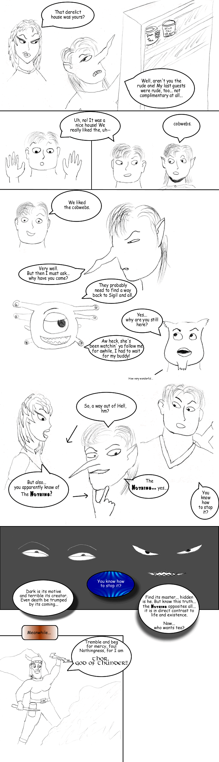 This comic parodies aspects of TSR/Wizard's of the Coasts Planescape AD&D campaign setting under the Fair Use clause of U.S. copyright law. All images are the creation of the author except where otherwise credited.