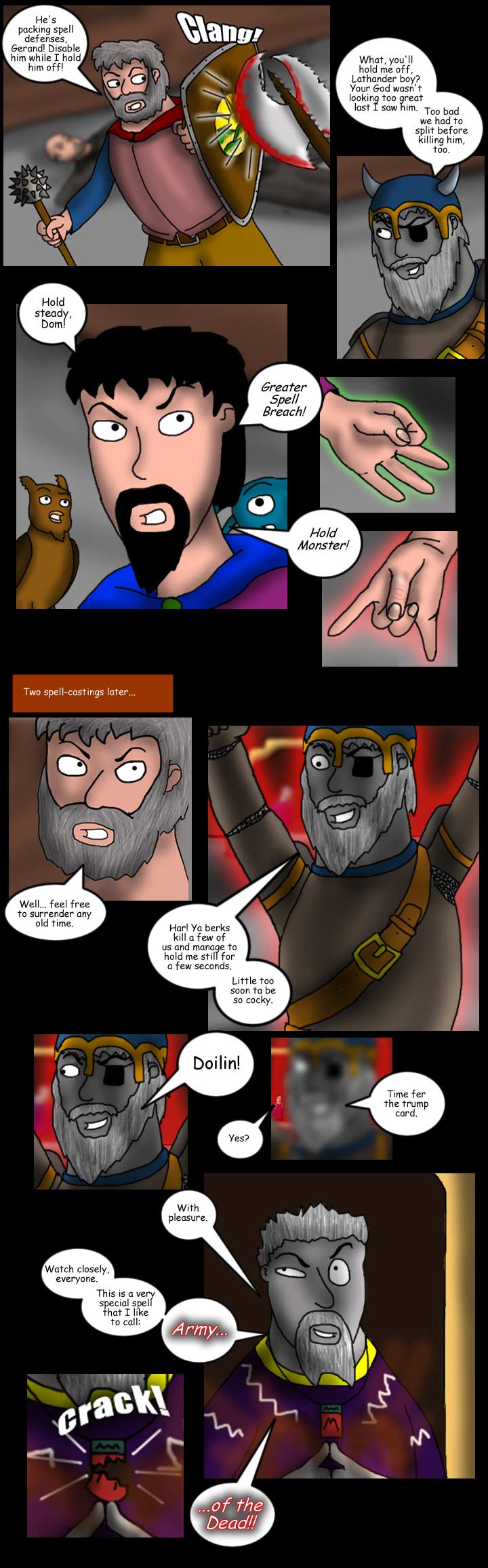 Next week's episode might be delayed a day or two, as we'll just be getting back from vacation. However, there won't be any more skips, if I can at all help it. Incidentally, extra points to anyone who can reference the comic that explains why Doilin's amulet just broke.