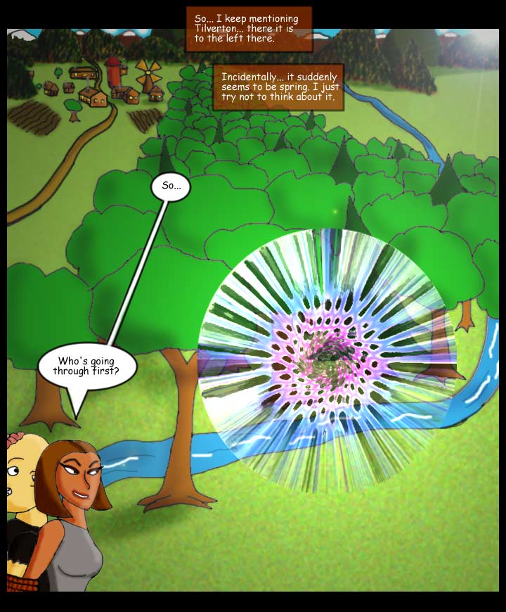 scene on the computer, the first two panels merged so nicely (the long distance town shot and the foreground shot) that I went with it. And I still want to meet my goal of hitting 50 comics