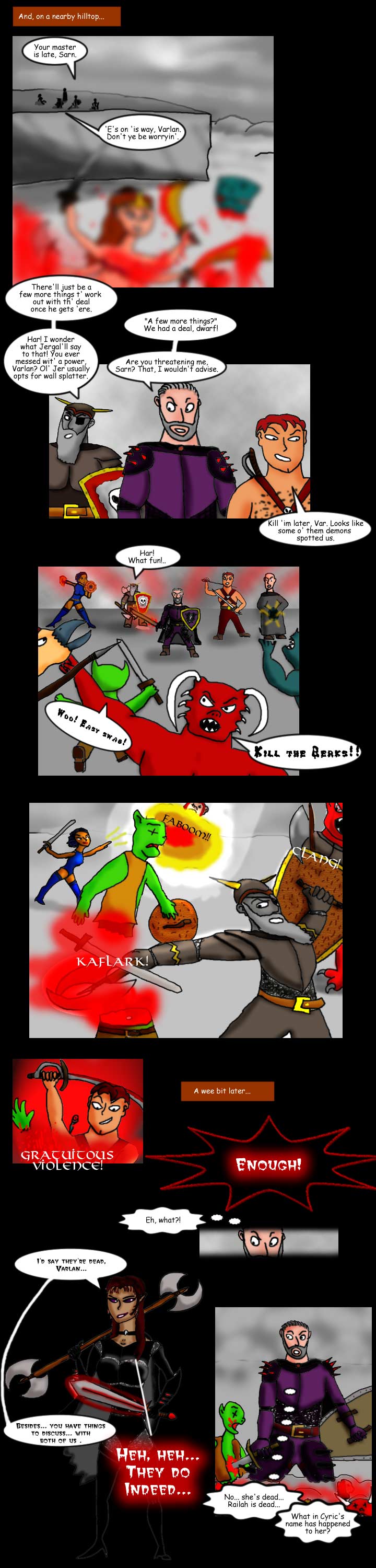 Heh, y'know, I was thinking how much later this comic was than I wanted, but I just realized that I introduced my massively evil villain (Railah/Jergal) on 6/6/06 (666), the same day as that