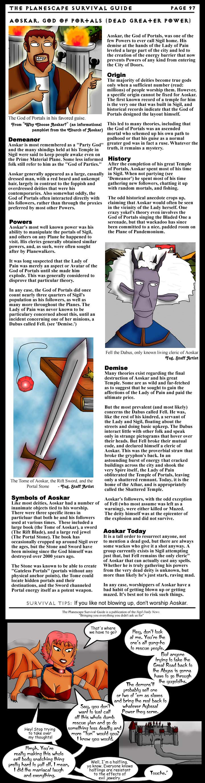 This comic parodies aspects of TSR/Wizard's of the Coasts Planescape AD&D campaign setting under the Fair Use clause of U.S. copyright law. All images are the creation of the author except where otherwise credited.