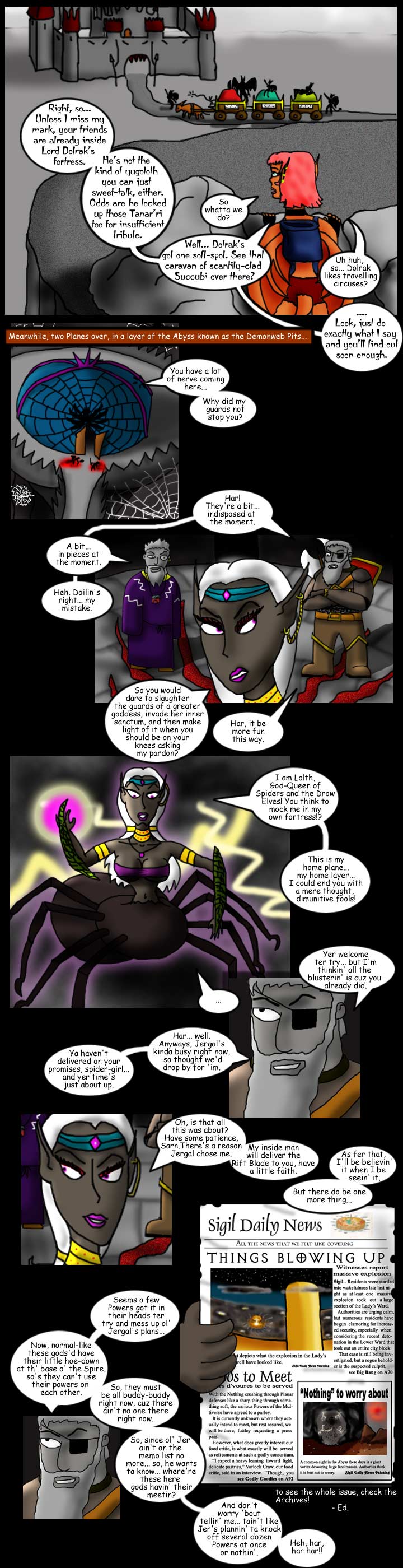 This comic parodies aspects of TSR/Wizard's of the Coasts Planescape AD&D campaign setting under the Fair Use clause of U.S. copyright law. All images are the creation of the author except where otherwise credited.