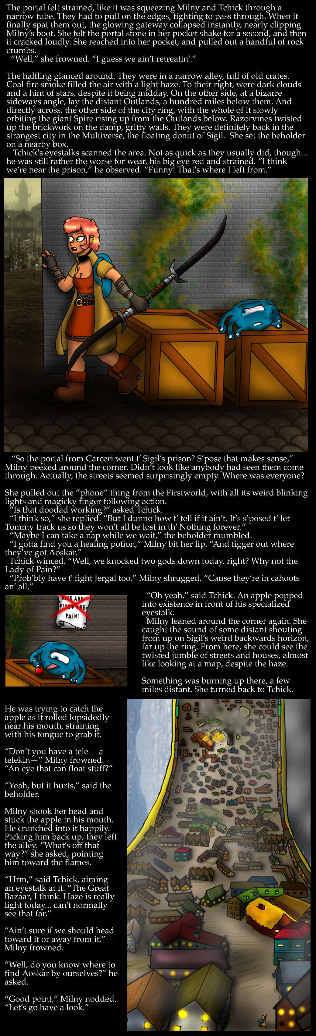 Hm, it seems script fiddling was the reason February was slow, too. That was part of this one, (and also a lot of work on our RPG system, which is getting pretty close to finished... at least the written parts) and also that last danged panel. So... many... houses... And it probably ended up more jumbled than it should. (It IS supposed to be jumbled, but maybe